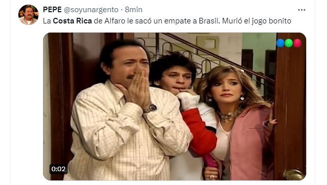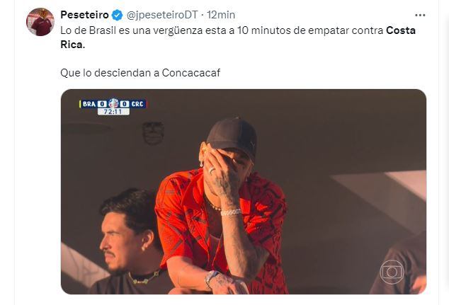 Por supuesto, las redes sociales ardieron durante el partido con el histórico resultado alcanzado por Costa Rica. Una vez que se confirmó el empate, estallaron los memes en X (antes Twitter). Los momentos del “ole” que resonó en el estadio y la reacción de Neymar en uno de los palcos, fueron algunas de las ocurrencias más divertidas de los cibernautas.
