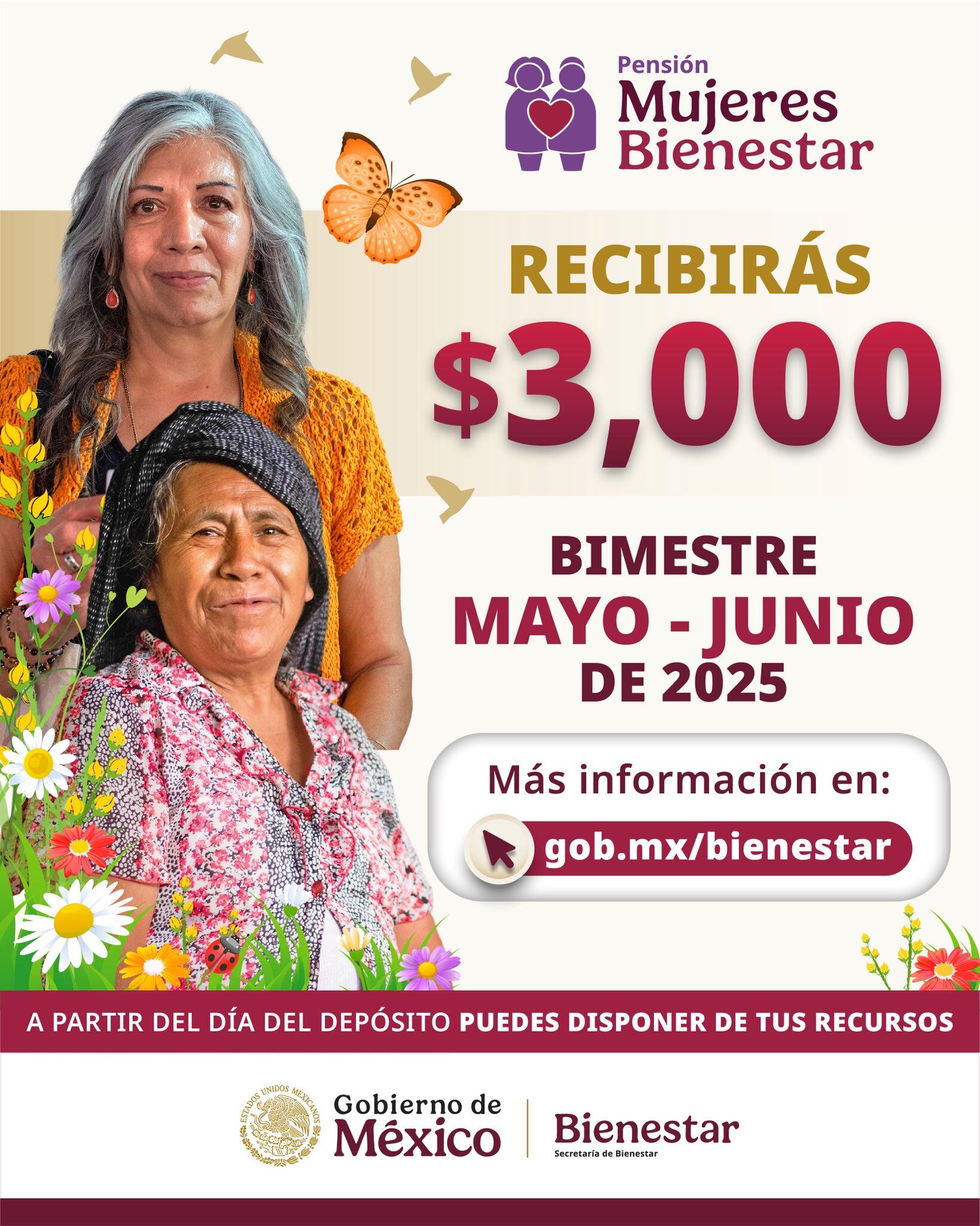 Hoy, jueves 15 de mayo de 2025, los beneficiarios de la Pensión para el Bienestar de las Personas Adultas Mayores reciben su apoyo económico correspondiente al bimestre mayo-junio, con un monto de 6 mil 200 pesos depositados directamente en su tarjeta del Banco del Bienestar.