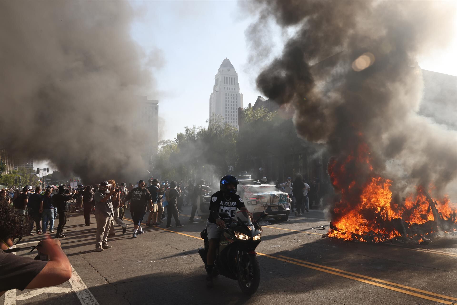 A través de una publicación en la red social X, la Policía de Los Ángeles ha advertido de que "el uso de dispositivos incendiarios contra agentes de la policía montada será respondido con la fuerza adecuada", advirtiendo de la autorización de municiones "menos letales" capaces de "causar dolor y malestar".