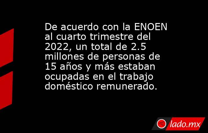 The post De acuerdo con la ENOEN al cuarto trimestre del 2022, un total de 2.5 millones de personas de 15 años y más estaban ocupadas en el trabajo doméstico remunerado. appeared first on .